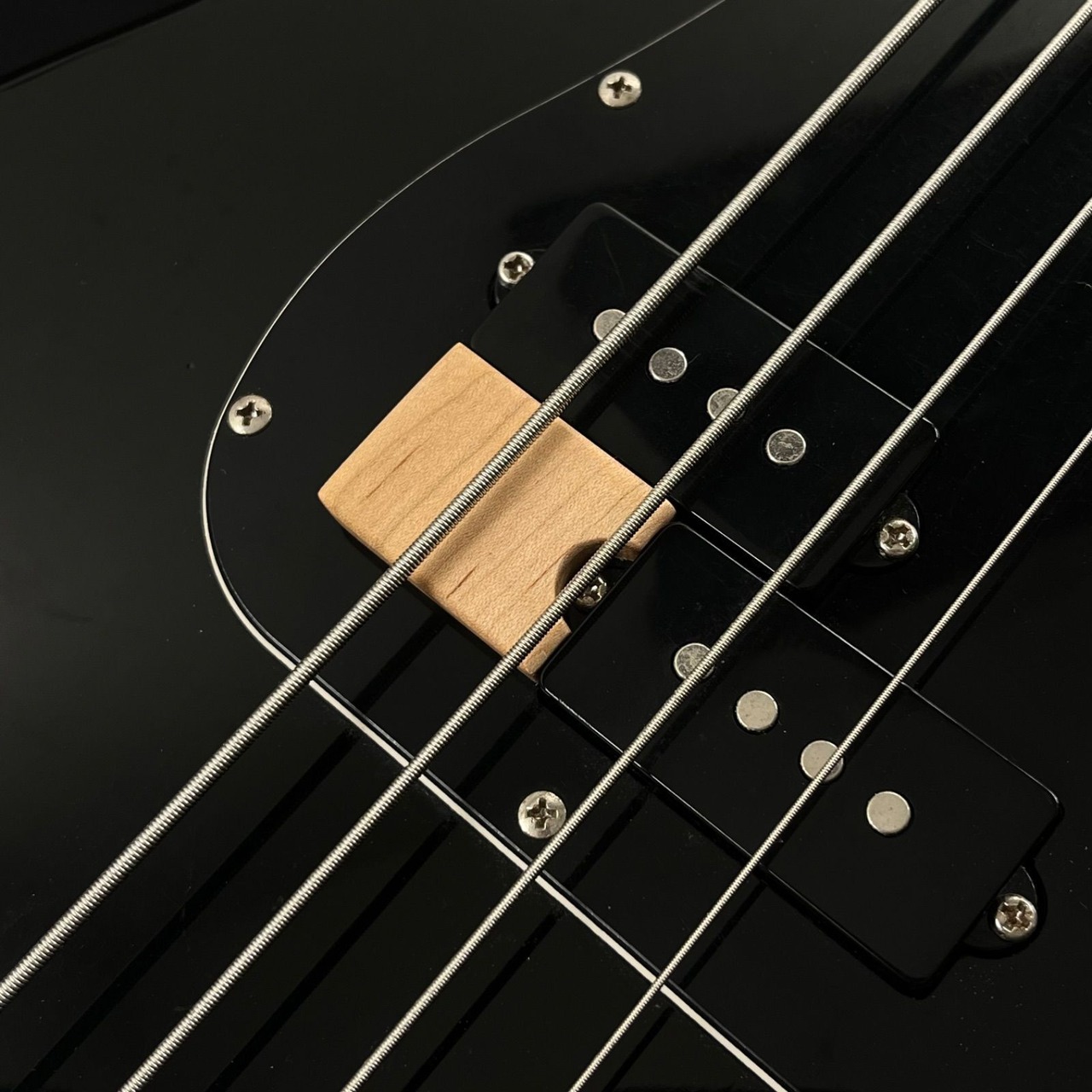 一般的なプレシジョンベース(プレベ/ PB / PJ)のスプリットコイルピックアップの端に取り付けて指を置くポジションを増やすためのフィンガーレストです。